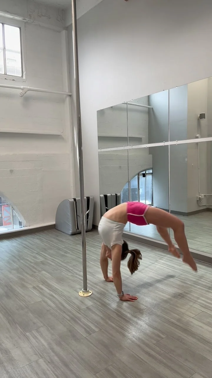 The focus of this 90 minute workshop will be kip preparation using a pole and closed toe heels. I will lead students through a detailed technical breakdown of kips and throws to discuss proper roll down technique, both on and off the pole. We will then apply the technical and theoretical kip training to kip variations including: pole assisted kips, handstand kips, shoulder mount kips and kips from a throw off the pole.